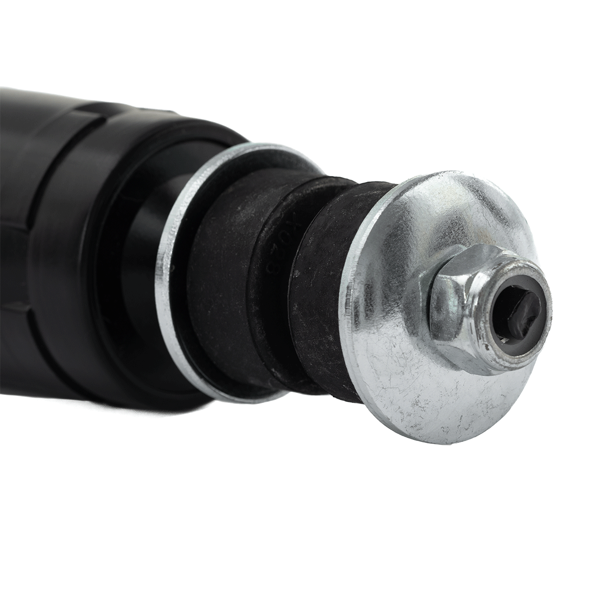 En segundo término hay que mencionar que estos amortiguadores, vienen con un juego de gomas superiores tipo dona, que están fabricadas de material de goma rigida, el tema es que vienen muy altas y al momento de querer colocar el amortiguador en la parte superior, estas gomas impiden que la cuerda del vástago superior no se asome para colocarle la tuerca de seguridad para sujetarlo al brazo superior de la suspencion