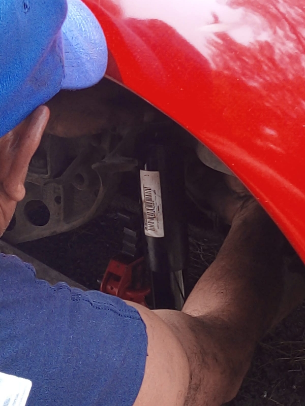 5.-Una vez retirada la rueda aplicamos liquido afloja todo a los tornillos superior e inferior del amortiguador, debido al polvo del camino en algunos casos se pegan y/o´ oxidan.
