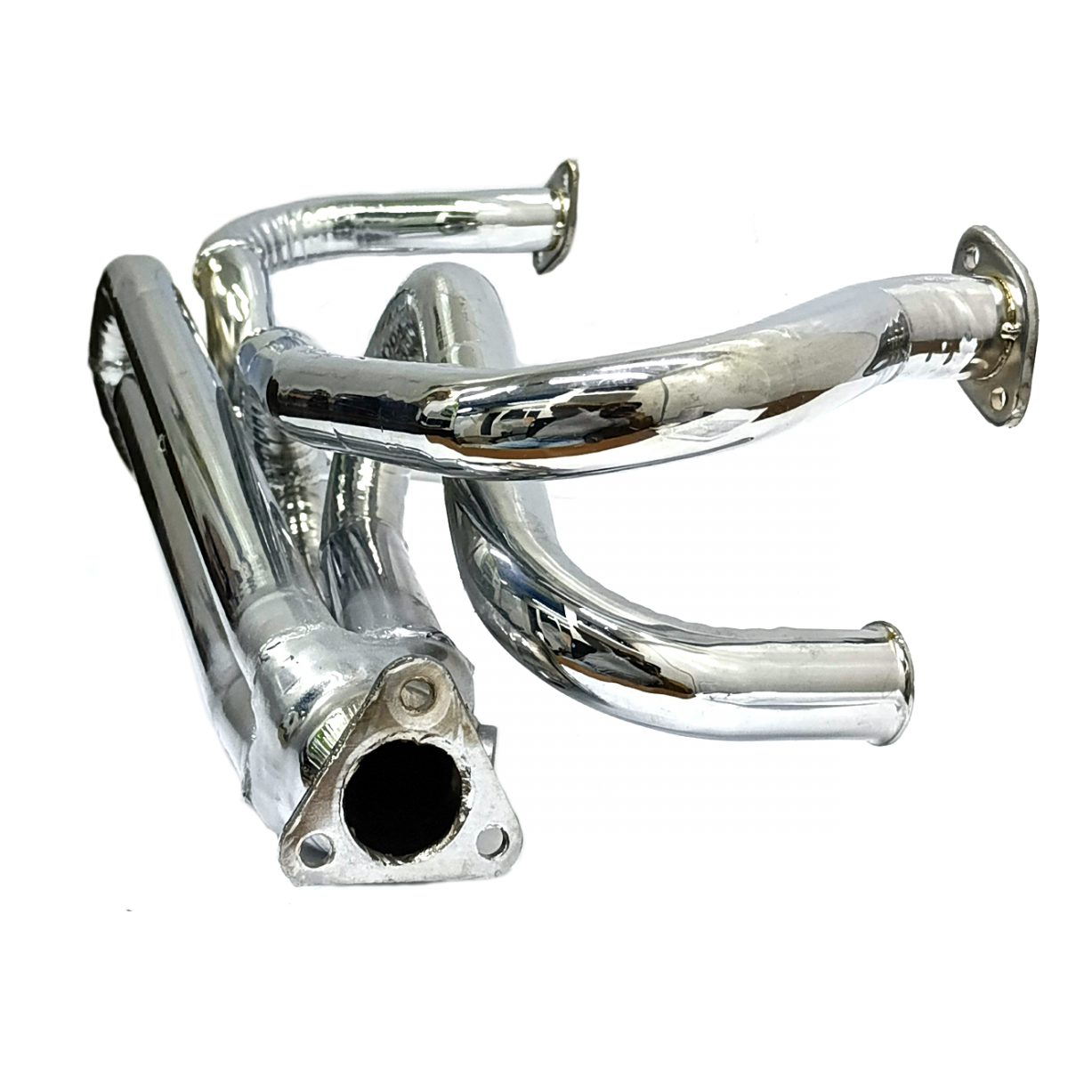 Normalmente un vocho cuenta con solo dos componentes para el escape: el primero serían los dos tubos o bastones que salen e la cabeza y dirigen los gases hacia el segundo elemento que es el mofle o silenciador, con estos dos, el motor elimina el excedente de la combustión, nada impresionante. Ahora que si quieres que tu vocho emita un sonido más agresivo que el clásico ruido de los motores BOXER, entonces debes colocar mofles de competición, los hay de muchos tipos, pero cualquiera que elijas requerirá que primero coloques esta araña. Seguramente por la forma ya habrás deducido por que le dicen así a este múltiple, tiene por función servir como conexión entre los bastones y el nuevo mofle que pretendes instalar y también transformar el sonido del motor, por eso el arreglo rebuscado de tubos; En el otro extremo, una araña cuenta con una entrada en forma de triángulo, por la cual se conectara con el mofle. Una vez hecha toda la instalación, tu vocho ahora tendrá esteroides en su “voz” algo que muchos vocheros y amantes de las competiciones buscan para su escarabajo.