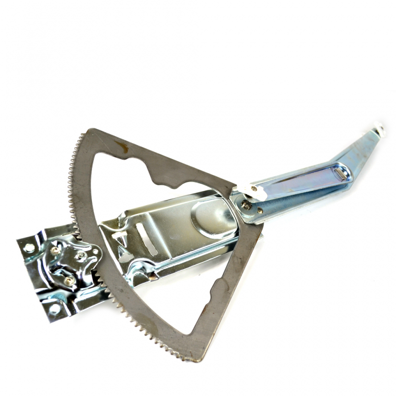 El cristal puede subir y bajar gracias a mecanismos como este que mediante un engrane podemos ajustar la altura del vidrio por medio de la manija, este elevador es muy curioso porque no utiliza el sistema estandarizado de poleas y cables como casi todos los demás coches, lo que lo hace más sólido en su composición y con casi ningún punto débil, excepto las muelas plásticas que tiene e las puntas de sus brazos móviles. Lo que determina su avería son los dientes, ya que cuando se barren, no podrán engancharse a la manija y entonces no habrá manera de volver a subir los cristales.