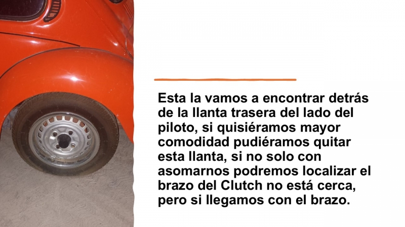 Esta la vamos a encontrar detrás de la llanta trasera del lado del piloto, si quisiéramos mayor comodidad pudiéramos quitar esta llanta, si no solo con asomarnos podremos localizar el brazo del Clutch no está cerca, pero si llegamos con el brazo.