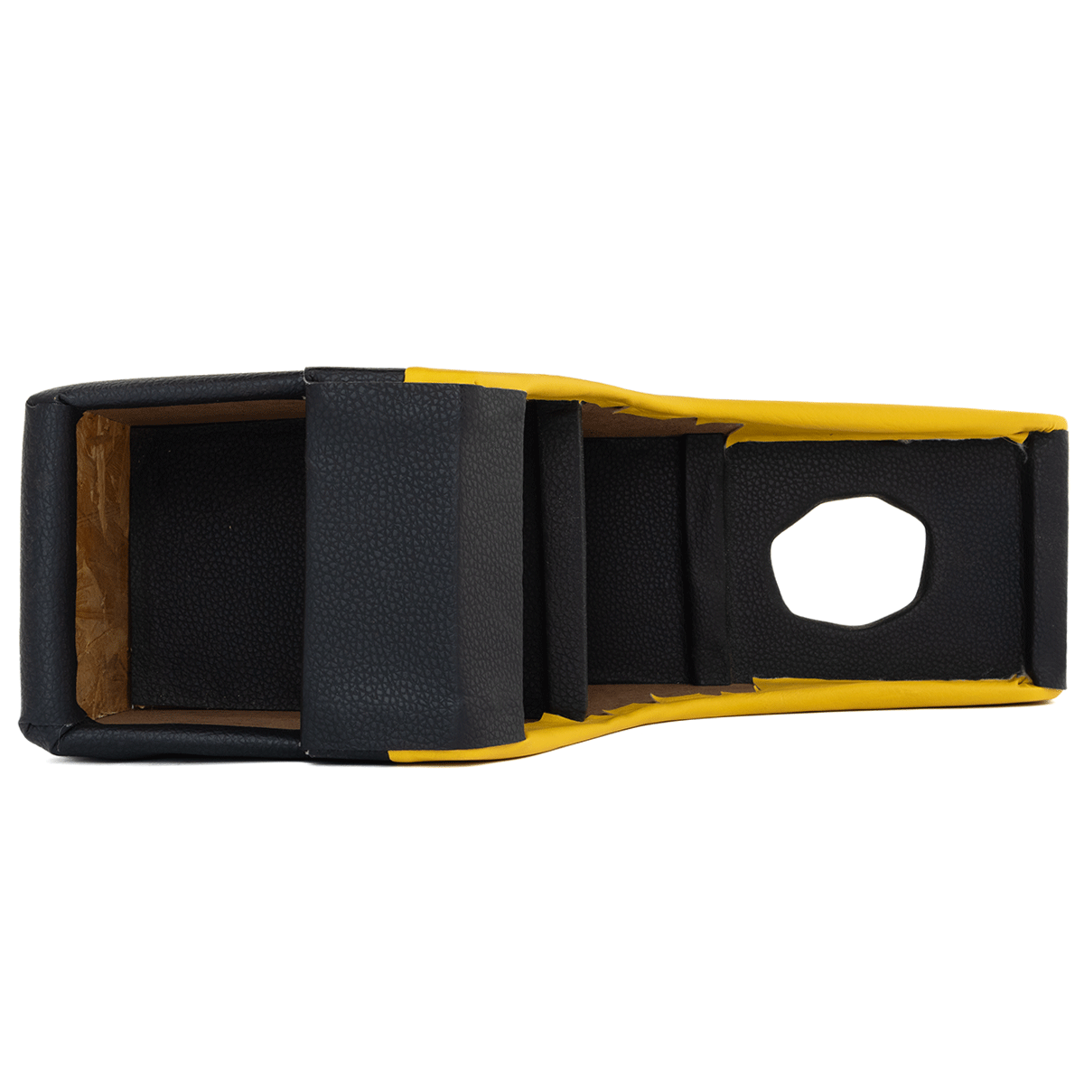 Consola Central de Madera con Forro Vinil Amarillo y Negro para VW Sedán