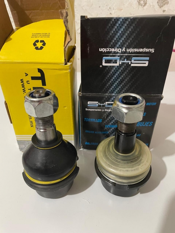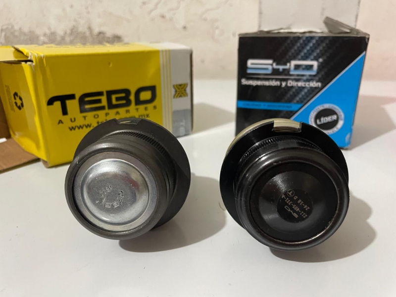 Tuve que comprar 2 rotulas SYD ya que las TEBO no se tienen en existencia las 4 y las SYD tampoco, solo hay una o dos si es que tienes suerte, el mecánico me dijo que ha colocado esta marca y le han salido muy buenas por lo que coloque dos TEBO y dos SYD de cada lado para que veamos el rendimiento futuro. La verdad si están de muy buen material y peso, por lo cual quise tomar fotos comparativas para que te animes a comprar esta marca.